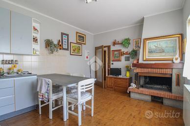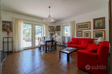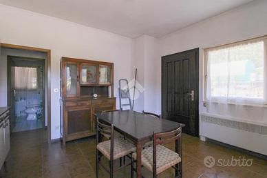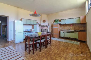 A poca distanza dall'ingresso è situata l'abitazione principale: tramite porta blindata si accede al disimpegno che conduce alla zona giorno molto luminosa grazie alle ampie vetrate che si affacciano sul grande terrazzo. La cucina separata è dotata di caminetto e offre ampio spazio. Le camere da letto sono tre, di cui una matrimoniale con bagno in camera finestrato e due camere singole. Il secondo bagno è anch'esso finestrato e dotato di sanitari in ceramica e doccia. Al piano semi-interrato, si trova un'ampia taverna con un ulteriore fuoco in muratura, un secondo bagno, una lavanderia e una cantina. Questo livello è accessibile sia tramite l'ampia scala interna che con una porta che si affaccia sull'accesso esterno.