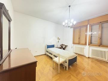 Al piano primo si sviluppa l'unità principale, già libera, caratterizzata da spazi ampi e ben distribuiti: l'ingresso introduce in un soggiorno luminoso, separato dalla cucina abitabile. La zona notte comprende due camere matrimoniali e un bagno finestrato. L'appartamento presenta finiture dell'epoca, consentendo all'acquirente di intervenire secondo il proprio gusto e le proprie esigenze.