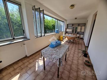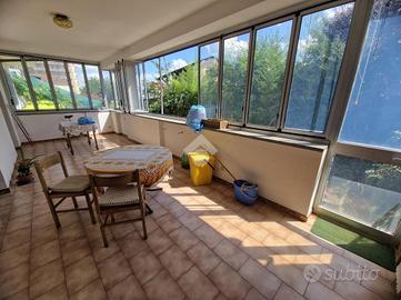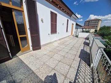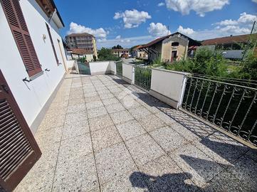 In zona comoda a tutti i principali servizi, la soluzione semi indipendente si trova nel comune di Villafranca d'Asti. La porzione di casa è suddivisa in due unità abitative indipendenti tra loro. Al piano terra, il primo appartamento è così composto. L'ingresso è living sulla zona giorno ed è separata dalla cucina abitabile direttamente collegata al terrazzo coperto, verandato e condonato da cui si può accedere al giardino posteriore; nel disimpegno si trova il bagno finestrato dotato di box doccia e la camera da letto matrimoniale che si ricongiunge, tramite porta finestra, al terrazzo. La scala in pietra porta al primo piano. Dal portoncino si accede al disimpegno che collega tutti gli ambienti dell'appartamento. La zona girono è suddivisa in tinello e angolo cottura separato tramite muretto basso e affaccia sul balcone dell'ingresso principale, il salone doppio sfocia invece sul terrazzo privato posteriore all'abitazione, le camere da letto sono due, entrambe di generose dimensioni. Completano l'abitazione la cantina al piano interrato e il box auto doppio con accesso indipendente su strada. La casa è già stata rivista ed è abitabile da subito.