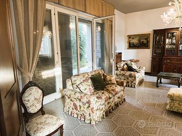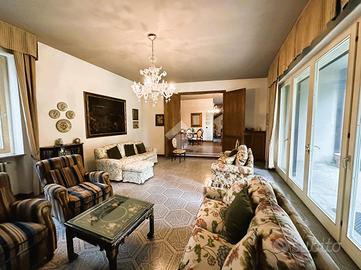Dispone di un doppio ingresso (un ampio atrio principale e un ingresso di servizio sul retro), un salotto, un soggiorno con porticato, una cucina spaziosa, una sala da pranzo, una veranda, un disimpegno e un bagno finestrato.