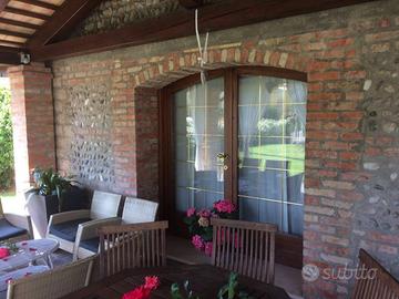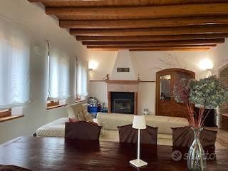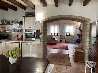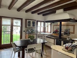 Casarsa-Loc. San Giovanni: In zona tranquilla e circondata dal verde, vicina a tutti i servizi (asilo, scuole, mezzi pubblici), è possibile acquistare una porzione di villa bifamiliare in stile Liberty dei primi 900, oggetto nel 2002 di una radicale ristrutturazione. La casa, disposta su tre livelli, presenta stanze ampie e ben distribuite con alti soffitti travati a vista. Offre una funzionale cucina in muratura con stufa a legna ed un salotto di 40 mq con camino ventilato, tre camere matrimoniali, di cui una con bagno e cabina armadio, due camere singole, uno studio, 3 bagni oltre ad una cantina ed una lavanderia.