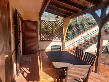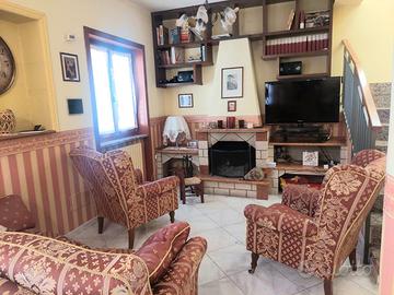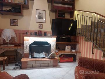 In zona Capitignano disponiamo di porzione di villa bifamiliare su 3 livelli di 150 mq. composta al piano seminterrato da una comoda tavernetta con angolo cucina e forno e da un accogliente camino a legna e da un bagno. Al piano terra vi è un salone triplo con camino, cucina, bagno e un ampio terrazzo con portico ideale per momenti di relax. Attraverso la scala si accede al piano superiore mansardato dove troviamo le 3 camera da letto matrimoniali ed il bagno. La soluzione dispone di riscaldamento autonomo a radiatori e di climatizzatori. E' presente un pratico deposito in legno. A completare la proprietà, un giardino di circa 500 mq circonda la villa, con alberi da frutta di albicocche arance e limoni, offrendo ampi spazi verdi dove poter godere della tranquillità e della privacy. Ottima esposizione.