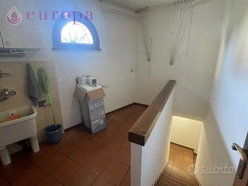 Al piano terra, l'ingresso si apre direttamente su un ampio salone luminoso con caminetto e pavimento in cotto, perfetto per creare un'accogliente zona living. Adiacente troviamo una cucina separata di ampie dimensioni, ideale per la vita quotidiana e i momenti conviviali. Completano il livello un bagno con doccia, una comoda lavanderia, uno studiolo e un garage doppio.