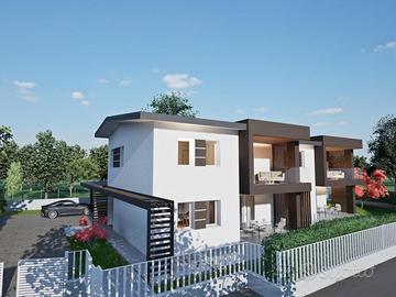 Splendida abitazione bifamiliare di prossima costruzione, situata in una tranquilla e verdeggiante zona residenziale a Sarone. Questa residenza rappresenta un esempio di design ricercato e tecnologie avanzate, ed è pensata per offrire comfort, funzionalità e stile. Sviluppata su due livelli, presenta spazi abitativi generosi e ben distribuiti. Al piano terra troverete un ampia zona living open-space di ben 54mq, che si apre sullo scenografico patio affacciato sul verde, ideali per vivere e ricevere ospiti, oltre al servizio giorno e ad un pratico vano multiuso in cui è alloggiata tutta la parte tecnica. Al primo piano si articolano invece tre spaziose camere da letto, una capiente cabina armadio, che garantisce ordine e funzionalità, ed il secondo bagno. La zona notte si arricchisce poi di un bellissimo terrazzo coperto, perfetto per momenti di relax. Completano il tutto il doppio posto auto coperto ed il generoso giardino di proprietà. Una casa che si distingue quindi per dimensioni, design e caratteristiche costruttive e tecnologiche di alto livello, il tutto ad un prezzo al metro quadro più che competitivo; un'opportunità unica sul mercato da prenotare al volo. Rif. 232663. Per maggiori informazioni visita www.grupposirio.com.