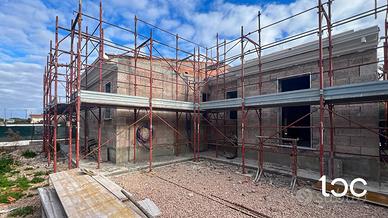 Situata nella splendida località di La Caletta, piccolo borgo rinomato per la sua spiaggia di sabbia dorata e il suo mare turchese, proponiamo elegante villetta caposchiera inserita in bifamiliare che rappresenta la perfetta combinazione tra comfort, raffinatezza e una posizione privilegiata a pochi minuti dal mare e dai servizi della zona. Questa porzione di bifamiliare, offre spazi accoglienti e ben distribuiti, pensata per garantire il massimo del comfort e della privacy. Appena entrati, ci accoglie un ampio soggiorno-pranzo con angolo cottura, un ambiente luminoso e ben organizzato, perfetto per momenti di convivialità, un comodo disimpegno conduce alla zona notte, composta da una camera matrimoniale con balconcino, una camera singola, ideale per ospiti o bambini e infine un bagno moderno con doccia, dotato di finiture di qualità. L'abitazione è arricchita da una splendida veranda con pergolato, perfetta per pranzi e cene all'aperto, dove godersi la brezza marina e la tranquillità del luogo. Il posto auto privato garantisce comodità e sicurezza, mentre il vialetto di accesso in pietra conduce con eleganza all'ingresso della casa e le scale esterne conducono al Solarium panoramico ideale come area prendisole o zona attrezzata. Il giardino di ampie metrature è ideale per momenti di relax all'aperto, con possibilità di realizzazione piscina privata. Dotazioni: predisposizione clima in tutti i vani, predisposizione fotovoltaico, riserva idrica con autoclave, doccia esterna e ripostiglio sottoscala; Finiture esterne in pietra sarda e travi a vista in legno. Possibilità di personalizzazione di pavimenti e rivestimenti. Tutto questo rende questa residenza un'opportunità imperdibile per chi desidera una residenza esclusiva a due passi dal mare e un sicuro investimento in uno dei borghi marini più rinomati della Baronia e della costa orientale sarda. Un angolo di paradiso ti aspetta a La Caletta!