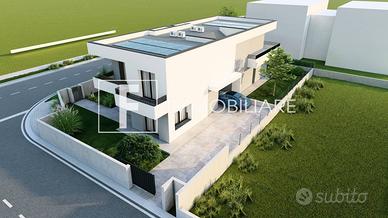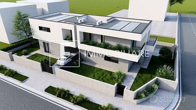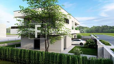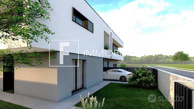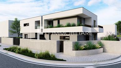 Rif: S327 Classe energetica: A4 Rif. S327 ESCLUSIVE BIVILLE IN VIA DEI LAGUNARI A JESOLO. PER INFORMAZIONI E APPUNTAMENTI sig. Simone Tel. 339.60.29.000 - Codice annuncio S327. F Immobiliare ha il piacere di presentarvi questa nuova ed esclusiva realizzazione immobiliare alle porte di Jesolo, inserita in un contesto residenziale di pregio e al tempo stesso comoda a tutti i servizi e a due passi dalla spiaggia. L'obiettivo è quello di massimizzare il confort abitativo e la durata dell'investimento anche nel futuro mettendo in atto una serie di soluzioni, architettoniche, costruttive e tecnologiche. L'intervento edilizio è stato progettato per coniugare il piacere dell'estetica e dei materiali scelti con l'indipendenza delle abitazioni e degli spazi interni, modulabili in funzione delle necessità del cliente. Le due unità, oggetto di proposta, al piano terra prevedono una zona living e cucina, abbondantemente illuminata da ampie superfici finestrate che affacciano sui giardini, un bagno completo di tutti i sanitari e un box auto. Dalle scale si accede al piano notte che dispone di una camera da letto matrimoniale, una seconda camera di quasi 11 mq, una stanza studio che può diventare una terza camera, una quarta stanza in sottotetto e il secondo bagno. Dalle camere si accede anche alla comoda terrazza. All'esterno saranno realizzate le aree verdi, marciapiedi e aree di manovra con 1-2 posti auto oltre a due comodi garage. Come extracapitolato è inoltre possibile installare delle pompeiane per poter godere di pranzi o cene conviviali all'aperto. Ampia l'indipendenza delle abitazioni, con ingressi separati e possibilità di parcheggiare nello spazio scoperto in proprietà, come pure le dotazioni comprese nel prezzo quali: - riscaldamento a pavimento in pompa di calore - 4.5kw di fotovoltaico di proprietà di ogni singola unità - infissi con profili in pvc di colore nero - impianto di climatizzazione completo di motori e due split (uno zona