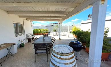 Procediamo al secondo piano mediante scala interna ed ecco il vano tecnico attrezzato con cucina e ripostiglio e da questo vano si accede al terrazzo di ben 135 mq! E' sbalorditiva la sua ampiezza e potrai attrezzarlo con tutti i comfort per poter godere appieno per tutta l'estate di uno spazio così bello!