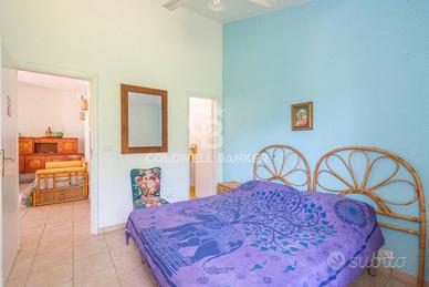 La villa si compone di ingresso-soggiorno, cucinino, tre camere da letto e doppi servizi.