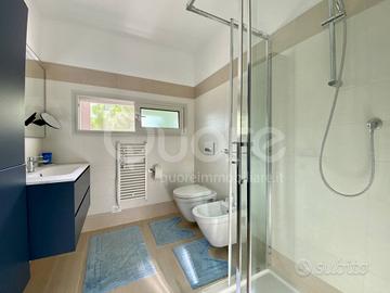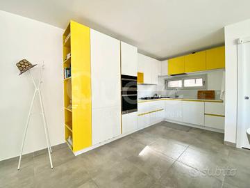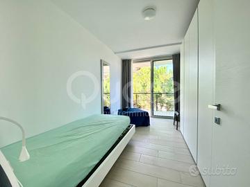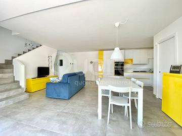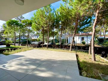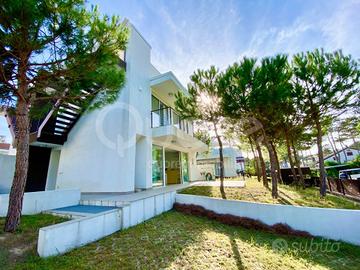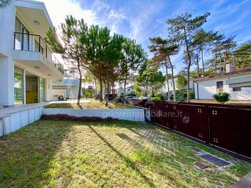 Esclusiva villa bifamiliare di recente realizzazione ubicata in zona tranquilla a Lignano Pineta. La casa si sviluppa su tre livelli ed è composta da: ampia zona giorno open space al piano terra, con cucina a vista, caratterizzata da una vetrata a tutta altezza che da accesso al patio esterno. Completa il piano terra un bagno di servizio. Al primo piano trovano collocazione due camere da letto, entrambe terrazzate, e un bagno finestrato con box doccia. Al piano superiore ampio solarium. Al piano interrato ampio vano utilizzabile come taverna o stanza per gli ospiti e ulteriore bagno/lavanderia. Giardino di proprietà con due posti auto.