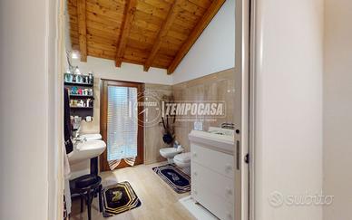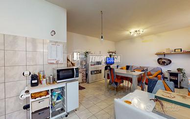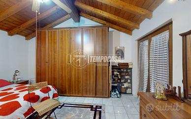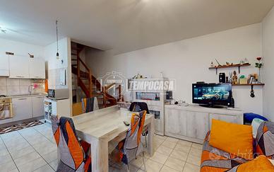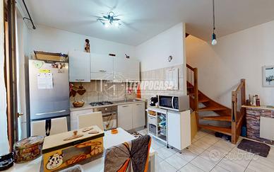 Proponiamo in vendita una graziosa casa indipendente di due locali di circa 60 mq, disposta su più livelli e inserita all'interno di un cortile completamente ristrutturato e riservato, in un contesto recente edificato nel 2012 e composto da sole 9 famiglie, ideale per chi desidera indipendenza e privacy senza rinunciare alla comodità dei servizi. L'abitazione si distingue per una distribuzione funzionale degli spazi e per le finiture accoglienti, con infissi in legno e doppio vetro che garantiscono un buon isolamento termico e acustico. Al piano terra si sviluppa la zona giorno, caratterizzata da un soggiorno con cucina a vista, un ambiente pratico e conviviale, ben illuminato e con accesso agli spazi esterni. Salendo al primo piano mansardato, impreziosito da travi a vista che donano calore e carattere agli ambienti, troviamo la camera da letto e il bagno, in un'atmosfera intima e raccolta. Al piano inferiore è presente una comoda taverna di circa 15 mq, perfetta come spazio hobby, studio o area relax, oltre a una zona lavanderia ben organizzata. La proprietà dispone inoltre di predisposizione per l'impianto di climatizzazione, offrendo la possibilità di personalizzare ulteriormente il comfort abitativo. Completano l'immobile un balcone di circa 9 mq, un piacevole giardino privato di 30 mq ideale per momenti all'aperto o per chi ha animali domestici, e un box che garantisce praticità e sicurezza per il parcheggio. L'immobile si trova in una zona residenziale tranquilla e ben curata, caratterizzata da un contesto ordinato e silenzioso. La posizione è particolarmente apprezzata per la vicinanza ai principali servizi, tra cui supermercati, scuole, negozi e aree verdi, rendendo la soluzione adatta sia a giovani coppie che a chi cerca un'abitazione funzionale in un ambiente sereno. Ottimi anche i collegamenti con i comuni limi - Classe: C