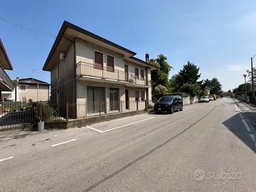 BOJON Ampia Casa Singola già divisa in 2 unità abitative con scoperto in comune. L'abitazione al Piano Terra è composta da ingresso, ampio soggiorno, cucina abitabile, 2 camere matrimoniali, wc; l'abitazione al Piano Primo è composto da ingresso, soggiorno, cucina abitabile, disimpegno, wc, 3 camere, e terrazze. Garage da 24mq al Piano Terra.