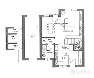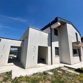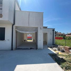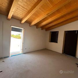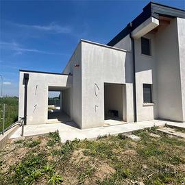 villa singola di nuova costruzione composta da soggiorno / pranzo e cucina abitabile di c.a. 53 mq, disimpegno, bagno, ampio garage doppio di 21mq con ulteriore magazzino /lavanderia di altri 10mq; al piano superiore completamente travato a vista troviamo tre camere, guardaroba, ripostiglio, bagno e ampia terrazza di quasi 22mq. Possibilità di fare le tre matrimoniali inglobando il guardaroba.