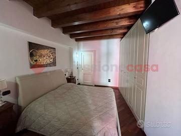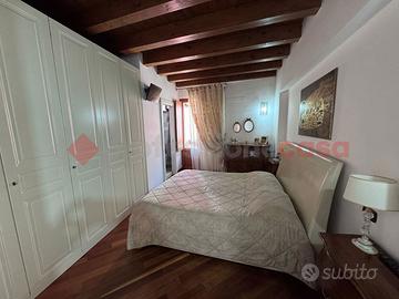 - Piano secondo : Si accede alla camera da letto matrimoniale , dotata di bagno personalizzato e di un grazioso balconcino con ringhiera in ferro battuto , che affaccia sulla caratteristica stradina del borgo.