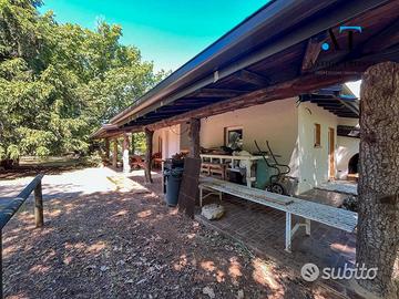 Piscina privata 5,5x13 m con profondità variabile da 1 a 3,30 metri, impianto di filtraggio a sabbia, pompe a timer e salvavita, impianto di irrigazione e area barbecue dedicata.