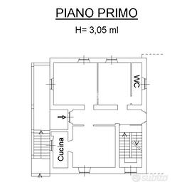 - piano primo: sviluppato su circa 80mq e composto da ingresso tramite balcone/porticato, cucina, soggiorno e camera oltre ad un bagno.