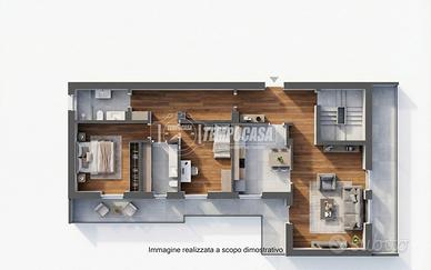 Al piano terra troviamo l'atrio d'ingresso con il vano scala che accompagna ai piani superiori; sullo stesso livello sono inoltre presenti un comodo box doppio e una cantina, creando una divisione già funzionale degli spazi.