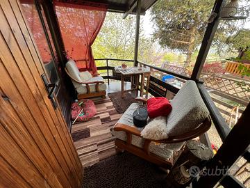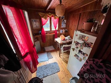 In vendita accogliente bungalow situato all'interno del campeggio Campeggio San Michele, in posizione tranquilla e immersa nel verde, con splendida vista sui laghi di Avigliana. Superficie: 43 mq Spazi esterni: giardino privato e terrazza panoramica Due posti auto privati situati davanti al bungalow Completamente recintato - ideale per privacy e sicurezza Caratteristiche principali: o Bungalow appena riverniciato (interno ed esterno) o Pronto da abitare da subito, grazie ai recenti lavori effettuati o Stufa a pellet nuova (acquistata circa 6 mesi fa) o Contatori autonomi di gas ed elettricità o Posizione panoramica con vista sui laghi di Avigliana o Venduto completamente arredato, comprensivo di elettrodomestici (tra cui lavatrice) Distribuzione interna: o Cucina abitabile con divano letto o Bagno completo con doccia, WC, bidet e lavandino o Cameretta con letto a castello (2 posti) o Ulteriore stanza attualmente adibita a zona giorno con tavolo e frigorifero, trasformabile in zona notte, con armadio a muro. Soluzione abitativa versatile, ideale sia come casa principale sia come punto d'appoggio, in un contesto tranquillo e immerso nella natura. Per qualsiasi informazione non esitare a contattarmi. È possibile visitare il bungalow in qualsiasi momento, previo accordo.