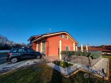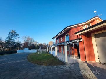 Buriasco To ,ampia villa singola nuova 250 mq circa , altissima efficienza energetica, composta da salone ,cucina ,camera ,bagno , palestra ,ampio magazzino,130 mq di garage , al primo piano tre camere, due bagni, terrazzi, ottima posizione , piscina, ampio giardino e parcheggio.