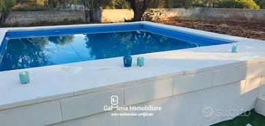 Presente impianto d'allarme e fossa imhoff. Di pertinenza dell'immobile un terreno di circa 8900 mq, con 32 alberi di ulivo. Una porzione più piccina dello stesso terreno, che contorna l'abitazione risulta recintata.
