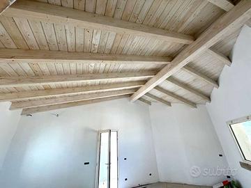 Le abitazioni vengono costruite ad alta efficienza energetica, in classe A, ove lisolamento termico è garantito da pareti di NORMABLOK a taglio termico, da tetti isolati realizzati con travi di legno bianco spazzolato a vista e da infissi e serramenti in alluminio a taglio termico.