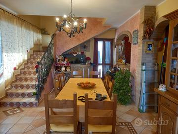 Villa unifamiliare con giardino e vista panoramica - 203 mq su 3 livelli In contesto tranquillo e riservato, proponiamo in vendita elegante villa unifamiliare di 203 mq complessivi, disposta su tre livelli e caratterizzata da ambienti personalizzati e dettagli di pregio. La proprietà si affaccia su un giardino ben curato, ideale per vivere appieno gli spazi esterni, arricchito da una zona barbecue e da un accogliente patio retrostante, perfetto per momenti di relax e convivialità. Distribuzione interna: - Piano seminterrato: ampio locale di sgombero finestrato, rifinito con suggestivi archi in pietra naturale, ideale come taverna, area hobby o spazio multifunzionale. - Piano terra: zona giorno luminosa e accogliente, composta da sala pranzo con camino, vero cuore della casa, salotto impreziosito da archi in pietra e cucina abitabile con piani in muratura rifiniti. Dalla cucina si accede direttamente al patio e al giardino. Completano il piano un elegante bagno con doccia e un comodo disimpegno. - Piano primo (zona notte): ampia camera matrimoniale con accesso a una terrazza panoramica con vista sull'hinterland di Cagliari e sul promontorio della Sella del Diavolo che garantisce ampio affaccio e luminosita' Caratteristiche principali: Superficie totale: 203 mq Villa indipendente su tre livelli Giardino privato curato Zona barbecue e patio Camino e finiture in pietra naturale Terrazze panoramiche ed ampio balcone. Soluzione ideale per chi cerca indipendenza, ampi spazi e una casa dal carattere autentico, immersa nella tranquillità ma a breve distanza dai principali servizi. Contattaci per avere ulteriori informazioni o prenotare una visita
