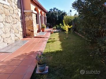 Costa Rei Cala Sinzias Residence Adhara - Rifinita villa unifamiliare articolata su due livelli a circa 400 metri dal mare, composta al piano terra da ingresso soggiorno con zona cottura, due camere da letto, bagno e due ampi loggiati - piano seminterrato con accesso interno ed esterno composto da soggiorno con zona cottura, due vani, bagno con zona lavanderia e ripostiglio - giardino su quattro lati di circa 300 mq con barbecue - pozzo artesiano per irrigazione giardino - doccia esterna con acqua calda/fredda - ampia zona parcheggio per due auto - termocondizionamento autonomo - caldaia a gas per acqua sanitaria - compreso di arredi ed elettrodomestici - Classe C Epgl 46 Kwh/mq annuo - cod. 174