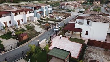 Giardino,portico scoperto con doppio accesso alla zona giorno con cucina e soggiorno open space;