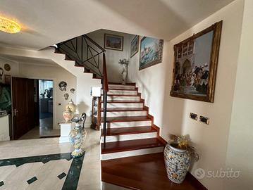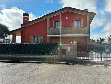 CAMPONOGARA Inserita in un ottimo contesto di Ville e Biville, signorile ed ampia Villa con giardino di circa 500mq, composta al Piano Terra da ingresso, soggiorno, cucina abitabile, cucinotto, disimpegno, WC, studio, lavanderia; al Piano Primo disimpegno, 4 camere di cui alcune con cabina armadio e bagno padronale, 2 bagni, 2 terrazze, soppalco e sottotetto; al Piano Interrato ampia taverna e garage doppio.