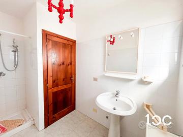 Attraverso una scala interna si accede al primo piano, dedicato alla zona notte, composta da una camera matrimoniale con incantevole affaccio sul mare, una camera doppia, un bagno spazioso con finestra e un pratico ripostiglio a muro, perfetto per mantenere ordine e funzionalità.