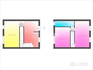 Varcando la porta d'ingresso, al piano terra, accediamo direttamente al soggiorno ampio, proseguendo troviamo la cucina abitabile di 15mq comoda per godersi pranzi e cene con amici e famiglia, completa il piano terra il locale sotto scala utile per essere utilizzato come ripostiglio.