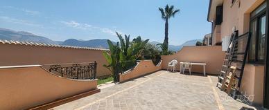Carini e precisamente vicino il Bioparco disponiamo di una villa nuova costruzione 220mq più piano cantonato la villa e ' cosi composta : piano terra ingresso cucina soggiorno, wc doccia , 1°piano : 3 camere con vista mare wc vasca , piano cantinato con open space e lavanderia ampi spazi esterni posti auto area barbecue forno a legna e doccia esterna.