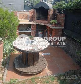 Al piano terra portico d'ingresso, soggiorno dotato di camino e stufa a pellet con doppia esposizione, cucina abitabile, bagno. Giardino sui tre lati, di cui una parte pavimentata e dotata di gazebo con struttura metallica e barbecue in muratura.