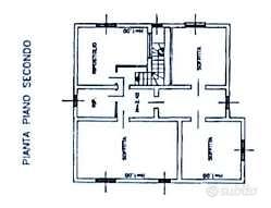 Il piano terra della prima casa di 188,00 mq e 11 vani è composto da cantina, deposito uso ufficio, bagno e ripostiglio uso taverna. Al primo piano c'è una cucina, soggiorno, due bagni, due camere e due terrazze. Al secondo piano ci sono due locali ad uso camera in sottotetto, due bagni, ripostiglio; locale di pertinenza: legnaia e ripostiglio. È presente anche un garage di 40 mq.