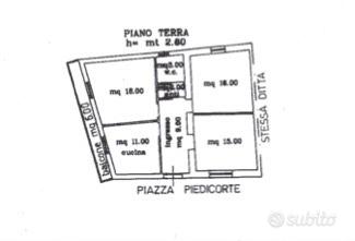 3° Appartamento con ingresso indipendente posto al piano terra di mq. 107 composto da: ingresso, soggiorno, sala da pranzo con cucinotto separato, due camere e bagno.