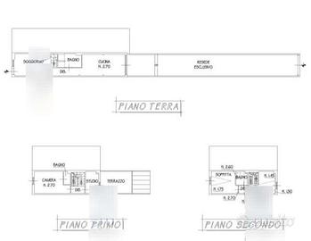 Trattasi di una casa composta da piano terra con soggiorno, disimpegno, bagno, cucina, vano scala per accedere al piano superiore e resede esclusivo; al piano primo da disimpegno, camera, studio, bagno, ampia terrazza e vano scala per accedere al piano superiore; al piano secondo sottotetto, da soffitta, disimpegno, bagno e un'altro vano soffitta.