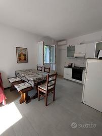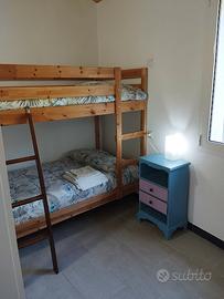 Casetta indipendente immersa nel verde, con piccolo giardino, su due piani, distante dalla spiaggia 10 minuti a piedi; disponibilità posto auto in area pubblica a 30 metri dalla struttura . Al piano terra open space , divano letto per 2 persone e angolo cottura , 1 bagno; al primo piano 1 camera matrimoniale e 1 camera con letti a castello, 1 bagno . Possibilità di 1 letto singolo aggiuntivo e di seggiolone e lettino neonato . Aria condizionata e wi-fi. . Soggiorno minimo 4 notti
