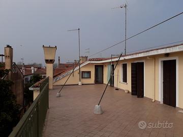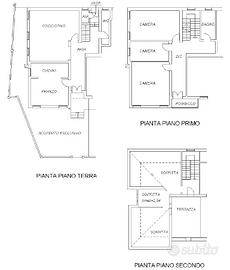 Casa a schiera d'angolo sud ovest, indipendente, degli anni '60, in ottime condizioni, luminosa, con due entrate. Piano terra rialzato: spaziosa cucina abitabile, due stanze e piccolo bagno. Piano primo: tre camere e bagno. Piano secondo: lavanderia e due stanze mansardate. Porzione di terrazza di 15 mq. Totale 200 mq. Giardino esclusivo di 60 mq. Impianti autonomi. Mai arrivata acqua alta