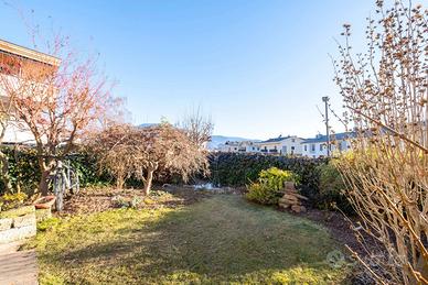 Al piano terra si trova una cucina luminosa con zona pranzo che si apre direttamente sul giardino privato, offrendo lo spazio ideale per momenti di relax e convivialità all'aperto. Al piano superiore sono collocati l'accogliente soggiorno e tre camere da letto, che offrono ampio spazio per la famiglia, gli ospiti o un ufficio domestico. Tre bagni garantiscono un elevato livello di comfort e una distribuzione degli ambienti funzionale.