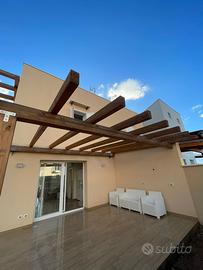 Villetta di nuova costruzione, situata in contrada Agliandroni (Terrasini), davanti la riserva naturale di Capo Rama. La villetta trifamiliare di 80 mq si divide su due piani, al piano terra zona cucina-living e un bagno, e al primo piano due stanze da letto ( di cui in una è presente un piccolo balcone) e un secondo bagno.