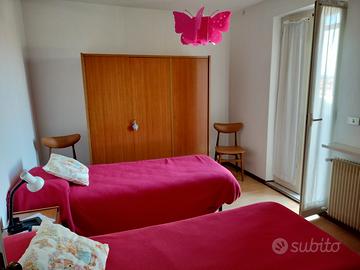 Due camere matrimoniali e una camera singola, bagno finestrato, due terrazze con vista aperta sul verde circostante.