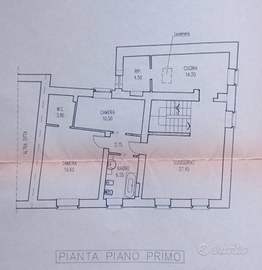 -Piano primo appartamento di 150mq con soffitta di 60mq + garage doppio di 45mq + legnaia di 45mq + terreno adiacente di 500mq