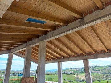 Servigliano, a 3 Km dal centro storico, in zona collinare, vendesi casa antisismica di classe A in corso di costruzione di 700 mc su 2 livelli, seminterrato di 130 mq e piano primo di 130 mq + balconi. Il progetto di demolizione e ricostruzione, all'interno di una corte esclusiva di almeno 1500 mq, rientra nel Sisma Bonus con la possibilità di usufruire delle detrazioni fiscali fruibili dal nucleo familiare. Dalla demolizione sono stati recuperati i vecchi mattoni, inoltre è possibile acquistare l'annesso terreno agricolo di circa 8500 mq.