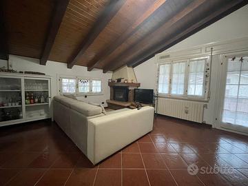 L'appartamento al secondo piano è stato ristrutturato, è travato a vista, il soggiorno è un ambiente accogliente dotato di caminetto, terrazza, cucina, disimpegno che conduce alla zona notte, camera matrimoniale, camera singola, piccolo studio e un bagno.