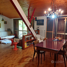 Casa bifamiliare situata sulle colline Tosco Emiliane , giardino di grandi dimensioni recintato , in più terreno esterno non recintato , riscaldamento a GPL in un appartamento e a pellet nell altro . La casa è costituita da cantina interrata , piano terra e primo piano, gli appartamenti sono identici ma specchiati , cantina composta da 3 locali comunicanti raggiungibili da scala esterna , il piano terra di entrambi gli appartamenti è formato da un ampia sala da pranzo legata al salotto con camino e cucina abitabile, il primo piano sempre di entrambi gli appartamenti si raggiunge con una scala a chiocciola ed è formato da una camera matrimoniale , e una camerina con letto a castello e bagno. Zona tranquilla immersa nel verde ideale come prima o seconda casa , la vicinanza al casello autostradale di Rioveggio (circa 8 km) la rende estremamente comoda , 30 minuti da Bologna e 60 da Firenze. Astenersi perditempo e visitatori seriali di case.