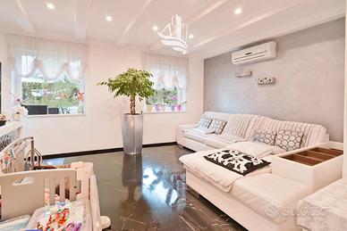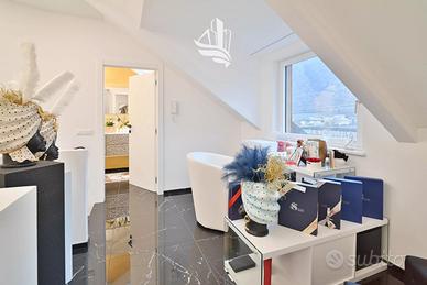 La superficie abitabile netta è di circa 145 m²; a questa si aggiungono ulteriori 65 m² al piano interrato. Gli spazi si sviluppano su quattro livelli e comprendono tre camere da letto, cinque bagni, uno studio, una cabina armadio e un'ampia zona giorno luminosa con area pranzo e cucina completamente attrezzata.