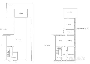 Stai cercando una soluzione Bifamiliare in zona Sant'Agnese? Abbiamo ciò che cerchi! Ampio Bilocale sito al piano terra in contesto con area cortiliva esclusiva composta da: ingresso, cucina, soggiorno, 2 bagni, ripostiglio e una camera. Tenute in buone condizioni interne; Dispone di infissi doppio vetro in legno con annesse inferriate, e di aria condizionata; A completare vi è una cantina sempre al piano terra. L'altra unità abitativa è così composta: Ampio Trilocale sito al piano primo con area cortiliva esclusiva; internamente composta da: PIANO TERRA: ingresso, sottoscala e scala esclusiva con accesso al piano primo; PIANO PRIMO: ingresso, tinello/cucina, soggiorno, 2 bagni, due camere da letto e un terrazzo di 30mq. Tenuta in buone condizioni interne; Dispone di infissi doppio vetro in alluminio con annesse inferriate, e di aria condizionata in zona notte e in zona giorno; A completare vi è una cantina al piano terra. Ottimo contesto esterno intonacato recentemente; (Nella planimetria si può notare il dettaglio di come è suddiviso il piano terra e le aree di cortile esclusivo) Cosa stai aspettando? I nostri immobili sono tutti in esclusiva, li vedi solo con noi! Ricorda di comunicarci il riferimento dell'annuncio, A1082T; - Classe: G - IPE: 13.00 kWh/mq anno