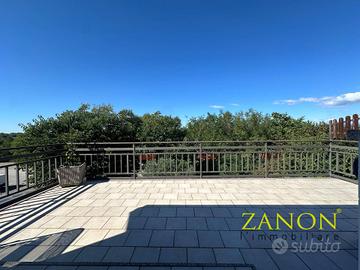 Da qui si accede a una veranda di 20 mq, perfetta per le colazioni lente o le serate estive, e a due terrazzi uno dingresso e uno più riservato dove lo sguardo si perde tra cielo e natura.