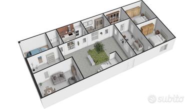 La casa si sviluppa su oltre 150 m² distribuiti su un unico livello, con ampie stanze, altezze generose e un'impostazione tradizionale che ben si presta sia ad una ristrutturazione conservativa sia ad un progetto moderno, mantenendo il fascino dell'architettura campidanese originale.