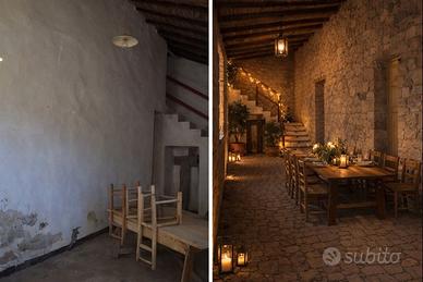 Varcato l'ingresso, si apre una corte interna suggestiva, raccolta e silenziosa. Un tempo era il centro della vita quotidiana, oggi può diventare un giardino intimo, uno spazio conviviale, un luogo di quiete.