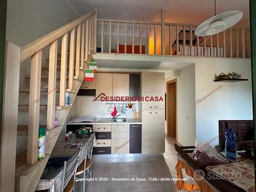 Gli spazi interni includono una cucina/soggiorno, un soppalco utilizzato come camera da letto, una seconda camera e un bagno con doccia.